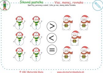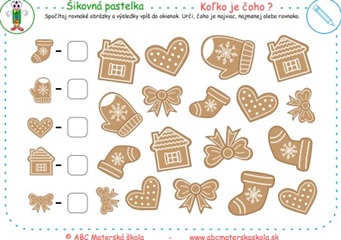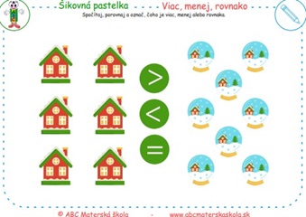 Spočítaj, porovnaj a označ, čoho je viac, menej alebo rovnako.