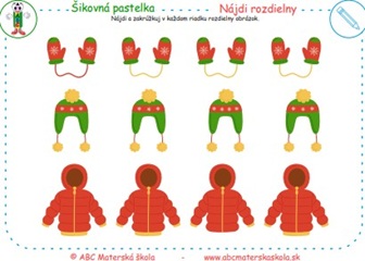 Oboznamujú s ročným obdobím zima na základe typických zimných a vianočných symbolov, s niektorými zvieratami, zimným oblečením, zimnými športami, rôznymi predmetmi, so základnými farbami a geometrickými tvarmi, upevňujú znalosti o farbe a tvare.
