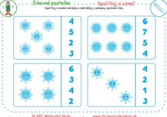 Spočítaj rovnaké obrázky a zakrúžkuj a pomenuj správne číslo.