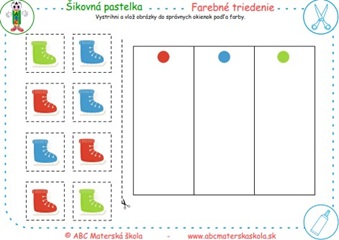 Vystrihni a vlož obrázky do správneho okienka podľa farby. Pomenuj všetky farby.