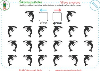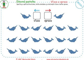 Spočítaj a vpíš do štvorčekov, koľko obrázkov je otočených vľavo a koľko vpravo.