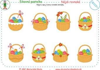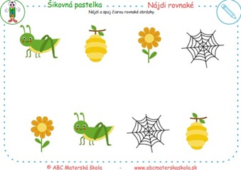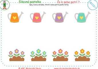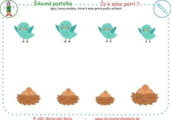 Spoj čiarou obrázky, ktoré k sebe patria podľa farby alebo podľa veľkosti.