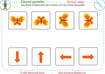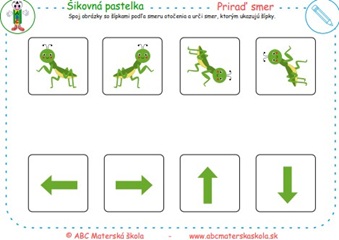 Spoj obrázky so šípkami podľa smeru otočenia a urči smer, ktorým ukazujú šípky.