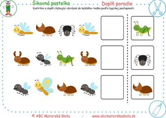 Vystrihni a doplň obrázok do každého riadka podľa logickej postupnosti.