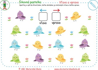 Spočítaj a vpíš do štvorčekov, koľko obrázkov je otočených vľavo a koľko vpravo.