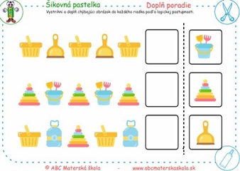 Vystrihni a doplň obrázok do každého riadka podľa logickej postupnosti.