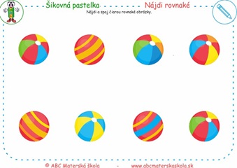 Nájdi (zakrúžkuj) a spoj čiarou rovnaké obrázky.