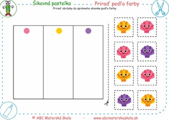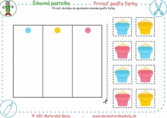 Priraď obrázky do správneho okienka podľa farby. Pomenuj všetky farby.