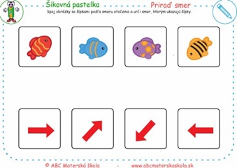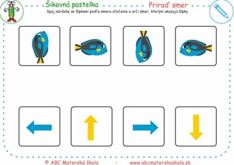 Spoj obrázky so šípkami podľa smeru otočenia a urči smer, ktorým ukazujú šípky.