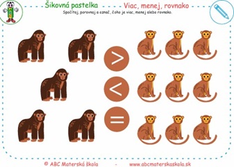 Spočítaj, porovnaj a označ, čoho je viac, menej alebo rovnako.