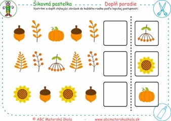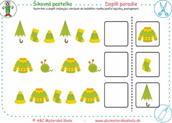 Vystrihni a doplň obrázok do každého riadka podľa logickej postupnosti.
