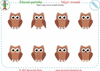 Nájdi (zakrúžkuj) a spoj čiarou rovnaké obrázky.