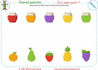 Spoj čiarou obrázky, ktoré k sebe patria podľa farby. Pomenuj všetky farby.