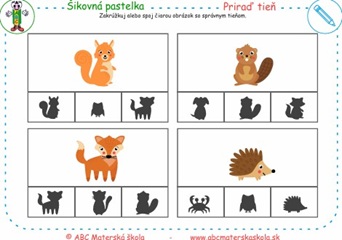 Zakrúžkuj alebo spoj obrázok so správnym tieňom.