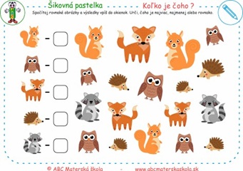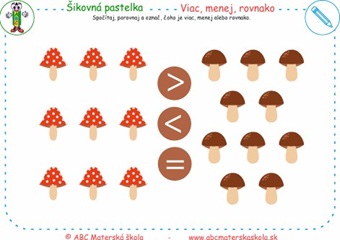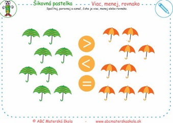 Spočítaj, porovnaj a označ, čoho je viac, menej alebo rovnako.
