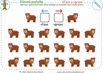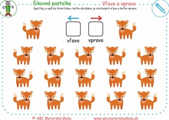 Spočítaj a vpíš do štvorčekov, koľko obrázkov je otočených vľavo a koľko vpravo.